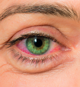 podliate krvou, suché oko, degenerované na úrovni tkaniva , rozmazané videnie